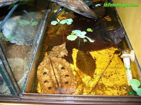 partes de agua. El fondo debe ser de arena, como el empleado para tortugas de caparazón blando.