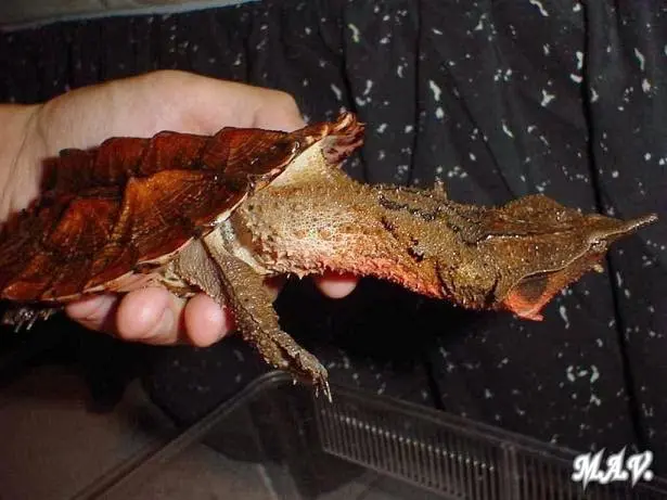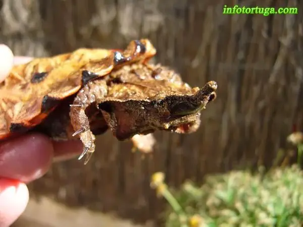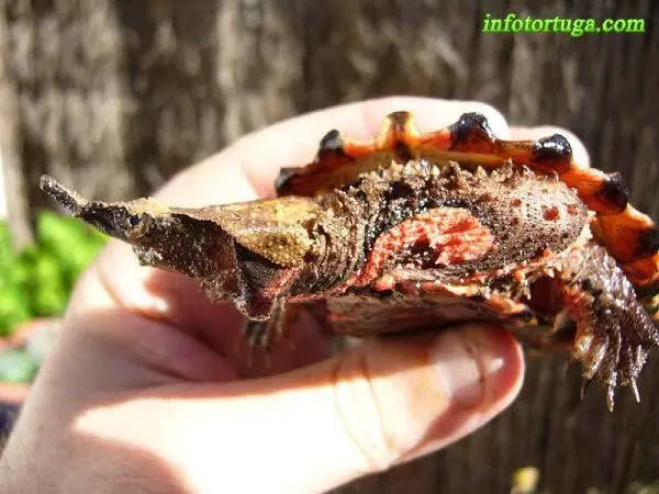 Especies similares: Al ser una especie única en su género, no hay especies muy similares. Puede parecerse un poco a la tortuga aligátor (Macrochelys temminckii) y a la tortuga mordedora (Chelydra serpentina), en cuanto a agresividad y alimentación.