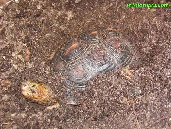| Cistoclemmys flavomarginata enterrada en el sustrato – Imagen de Jonathan J. González |
