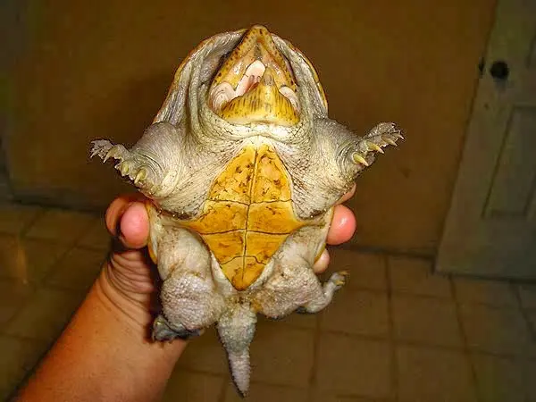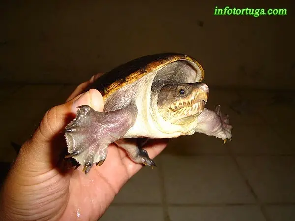 Especies similares: Podría confundirse con algunas especies del género Kinosternon, pero se puede observar que esta especie es muy particular. La podremos identificar fácilmente gracias a su plastrón de reducido tamaño y a las pequeñas protuberancias de su mandíbula (que parecen colmillos), entre otras muchas particularidades morfológicas.