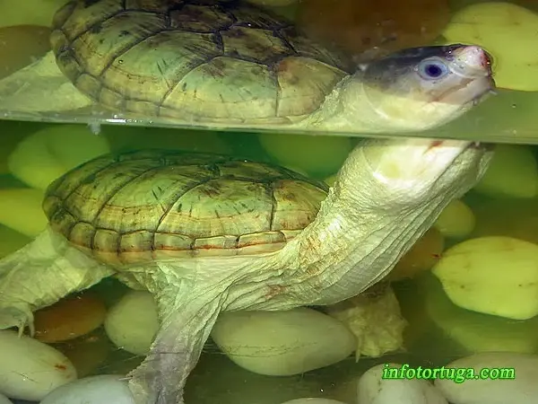 Se trata de unas tortugas bastante agresivas, por eso se recomienda tener los distintos ejemplares en acuaterrarios individuales. Al manipularlas deberemos tener mucho cuidado ya que tienen un cuello muy largo, y pueden propinarnos fuertes mordiscos.