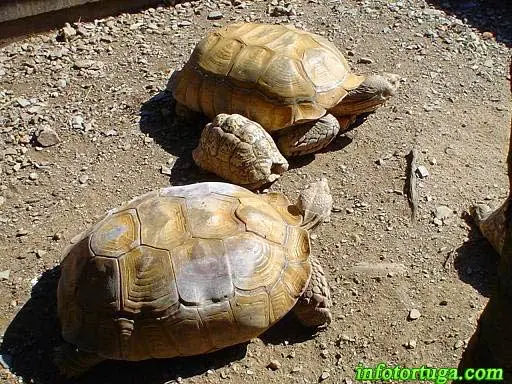| Dos ejemplares de Centrochelys sulcata con una Stigmochelys pardalis |