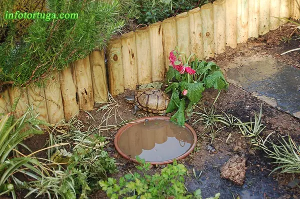 La mayor parte del estanque debería tener entre 10 y 20 cm de profundidad, ya que será la zona donde se alimentarán las tortugas (pueden comer sin necesidad de nadar).