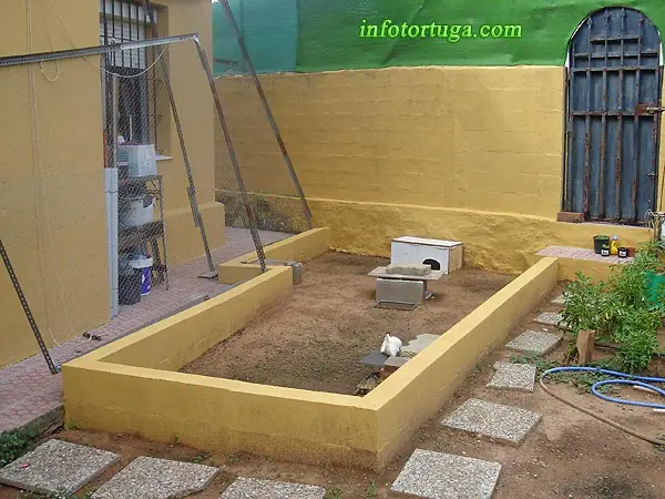 Estas tortugas son muy buenas escaladoras, por lo tanto deberemos rodear el recinto con alguna valla o muro de al menos 50-60 cm de altura, con las esquinas especialmente reforzadas (son las zonas más vulnerables). Esta valla debe estar hecha de un material lo más liso posible y que no sea transparente, ya que si las tortugas pueden ver el exterior intentarán escapar a todas horas.