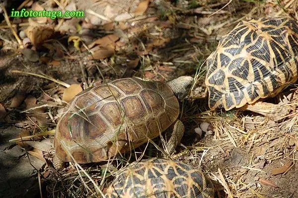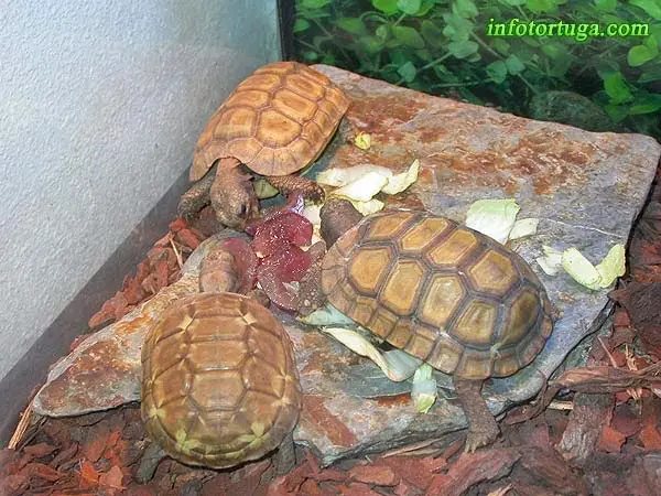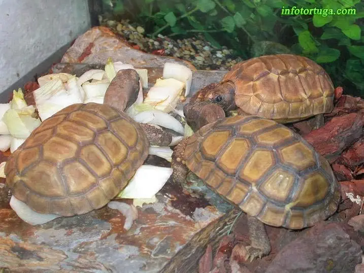 | Kinixys belliana junto a dos Geochelone elegans – Imagen de Enric Pàmies |