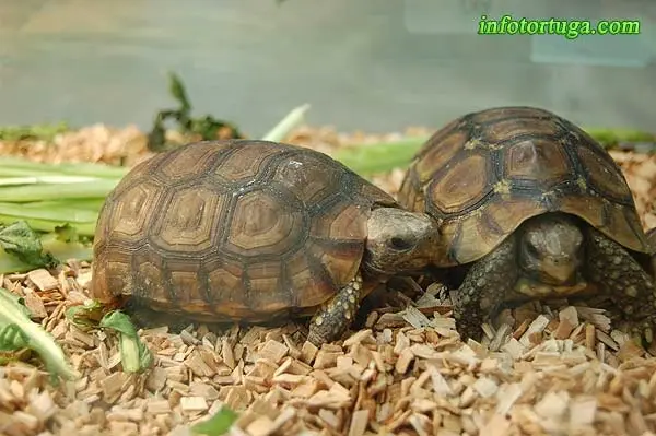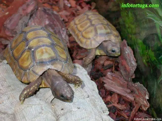 El substrato puede estar formado por mantillo, fibra de coco y hojas secas. En el terrario deberá haber un buen recipiente con agua donde nuestras tortugas se puedan bañar, y será también necesario un pequeño refugio.