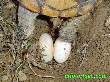 He visto hacer las puestas de dos formas distintas: Haciendo solo un pequeño agujero y dejar los huevos semi-enterrados entre la hojarasca, o bien hacer un agujero más profundo para enterrarlos completamente.
