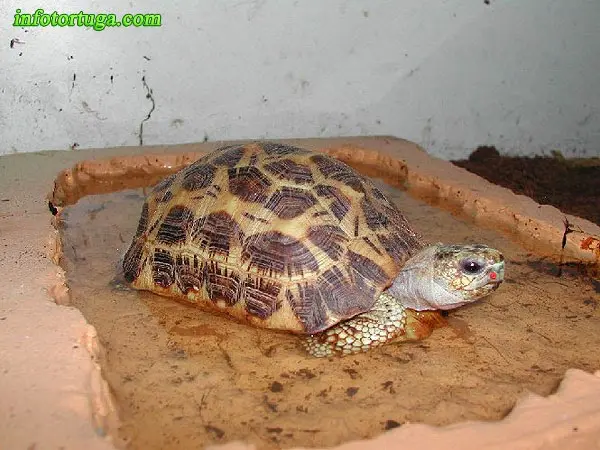 En el terrario deberemos poner un recipiente de poca profundidad (unos 10 cm) con acceso fácil para que la tortuga se pueda bañar y pueda beber cuando lo necesite. El agua deberá estar siempre limpia.