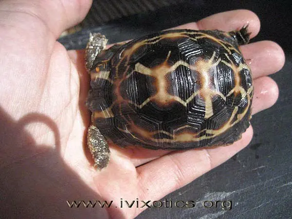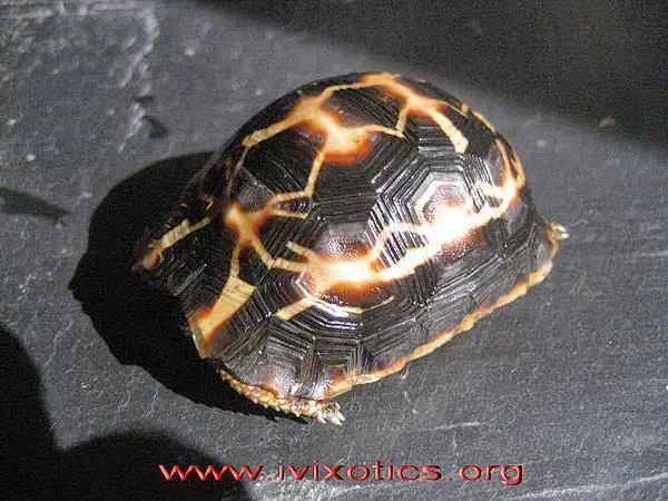 Los juveniles presentan un caparazón muy abombado de color negro con algunas rayas amarillas (recuerdan al dibujo de las Astrochelys radiata).