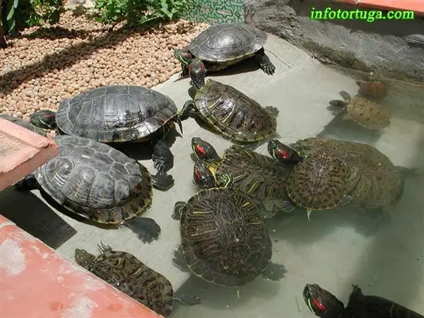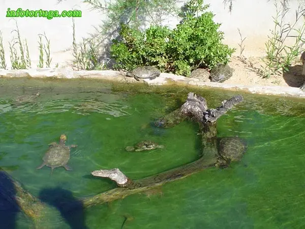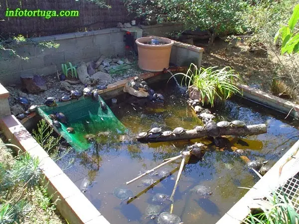 Si en el estanque deben vivir tortugas que no sean buenas nadadoras (Kinosternon, Sternotherus, …), deberá haber una rampa que llegue hasta el fondo del estanque, de tal forma que las tortugas puedan salir caminando por el fondo.