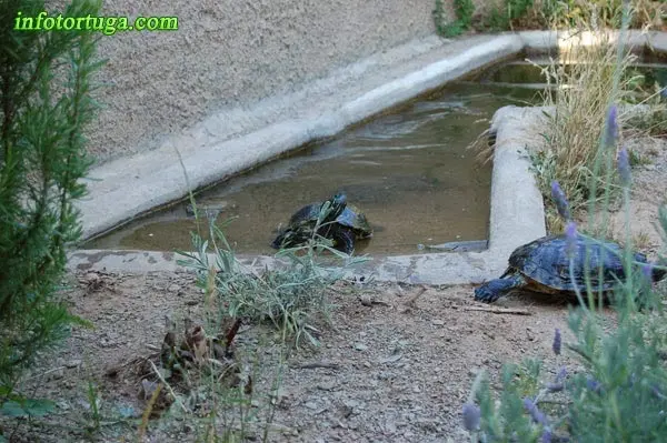 Básicamente hay dos opciones: Hacer los bordes muy bajos y suaves, de manera que las tortugas puedan subir fácilmente, o bien hacer en una parte del estanque una pequeña rampa de cemento.