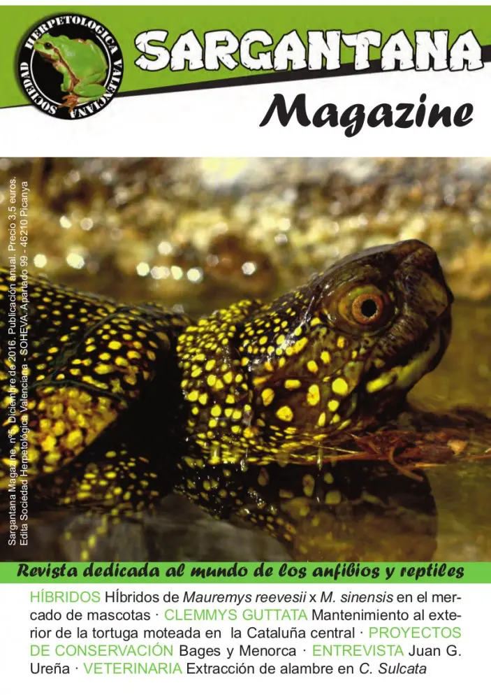 Os presentamos el número de 2016 de la revista Sargantana. Un monográfico dedicado a las tortugas, que incluye los informes técnicos del proyecto “Mauremys Bages” y del proyecto “Emys Menorca”. Un número que por primera vez, SOHEVA lanza como libre descarga. Sin la colaboración de los todos, esto no sería posible, así que podéis realizar un donativo voluntario o haceros socios: http://www.soheva.org/hazte-socio/