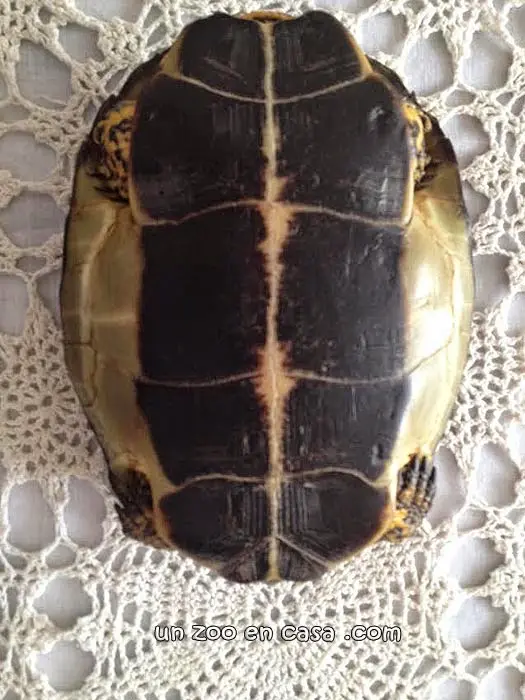 Dimorfismo sexual: El macho tiene la cola más larga y ancha, y tiene la cloaca más lejos del caparazón.