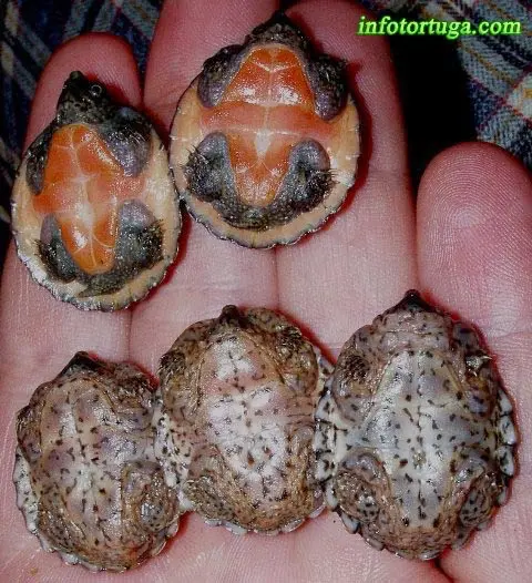 | Crías de Sternotherus carinatus (arriba) y Sternotherus minor (abajo) – Imagen de Josep Escribano |