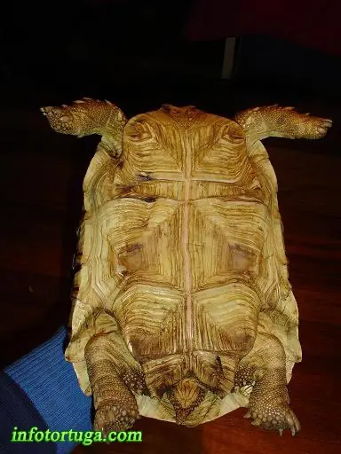 La verdad es que esta tortuga tiene una coloración que le facilita el camuflaje en su hábitat, en la sabana africana.